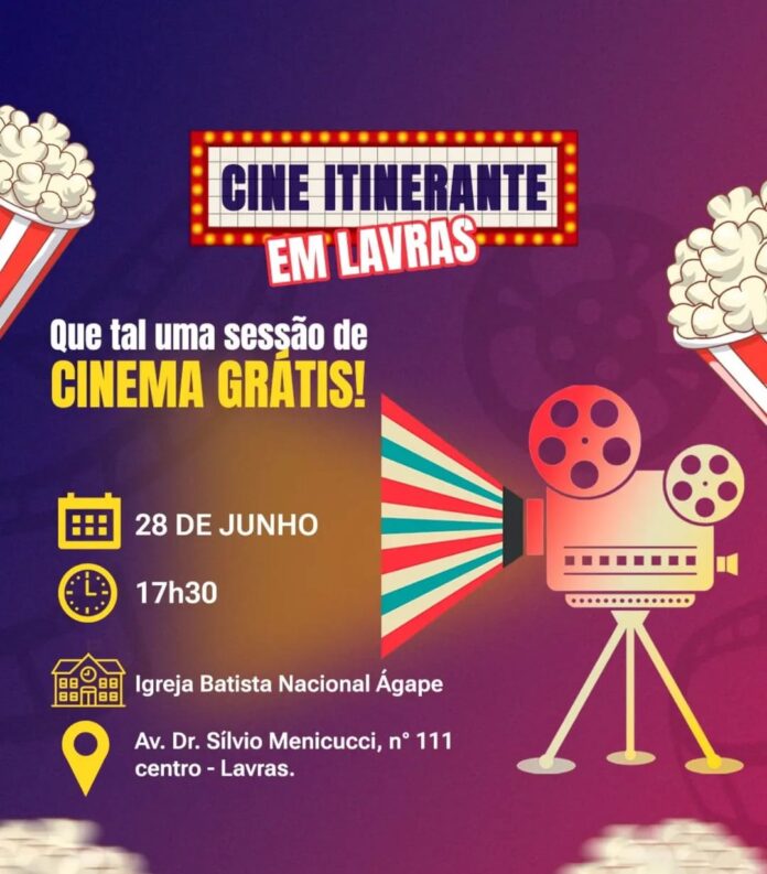Acontecerá dia 28 de junho, o Cinema Itinerante, com a apresentação de um filme de demais obras audiovisuais produzidas por profissionais de Lavras.
